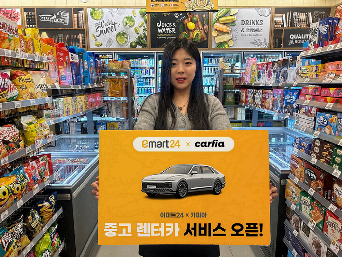이마트24에 따르면 2월 26일까지 2주간 차량 딜러 할인 프로모션 플랫폼 '카피아(Carfia)'와 손잡고 중고차 렌트 서비스를 제공한다. 중고 렌터카 서비스는 고객이 전국 이마트24 매장에 방문해 연락처를 남기면 '카피아'가 상품 관련 상담 및 결제 등을 전화상담으로 진행하고, 국내 최저가 견적을 목표로 가장 높은 할인 가능한 차량 매칭을 지원한다.