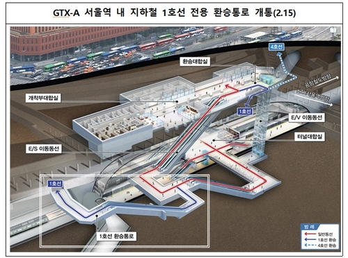GTX-A 노선 중 이용자가 가장 많은 GTX 서울역은 지난 15일부터 지하철 1호선과 연결되는 전용 환승 통로를 운영 중이다.