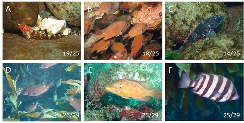 독도 주변 바다에서 가장 빈번히 관찰된 어류 3종도 저수온기에는 온대성 어류 2종(가막베도라치와 개볼락)과 아열대성 어류 1종(자리돔), 고수온기에는 아열대성·열대성 어류 2종(자리돔과 어렝놀래기)과 온대성 어류 1종(돌돔)으로 달랐다.