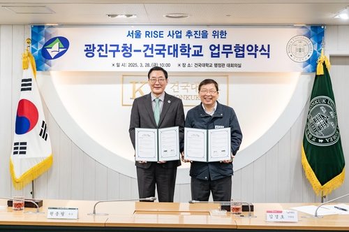 (서울=연합뉴스) 정준영 기자 = 서울 광진구(구청장 김경호)는 지난달 28일 건국대학교(총장 원종필)와 '서울형 라이즈 사업' 추진을 위한 업무협약(MOU)을 체결했다고 1일 밝혔다.