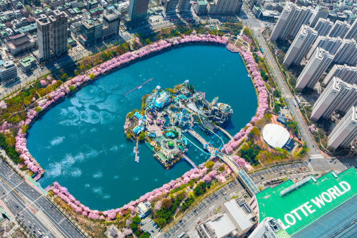 우선 롯데월드의 봄은 활기차다. 실내 공간이 아닌 잠실 석촌 호수 주변의 야외 공간을 중심으로 벚꽃의 생기를 느낄 수 있다. 변덕스러운 날씨에도 꽃과 함께 호반의 풍경, 흥겨움에 취해 분주하게 움직이는 어린아이들의 웃음소리는 색다른 즐거움을 전달한다. 제2롯데월드의 서울스카이에 오르면 석촌호수의 주변의 아름다움을 한눈에 즐길 수 있는 건 팁이다.