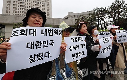 상고심 선고로 출입이 제한된 대법원 정문에서는 오후 1시께 양측 간 말다툼이 벌어져 경찰이 제지했고, 같은 시각 반포대로를 사이에 두고 일부 참가자가 서로를 향해 손가락 욕을 해 보이며 도발하는 모습도 눈에 띄었다.