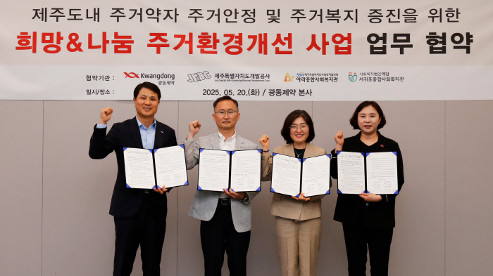 최성원 광동제약 대표이사는 "제주 지역사회와의 연대는 광동제약이 추구하는 지속가능경영의 핵심 가치"라며, "앞으로도 제주개발공사와 함께 주거환경 개선 등 제주를 위한 사회공헌 활동을 지속적으로 확대해 나가겠다"고 말했다. 김소형기자 compact@sportschosun.com