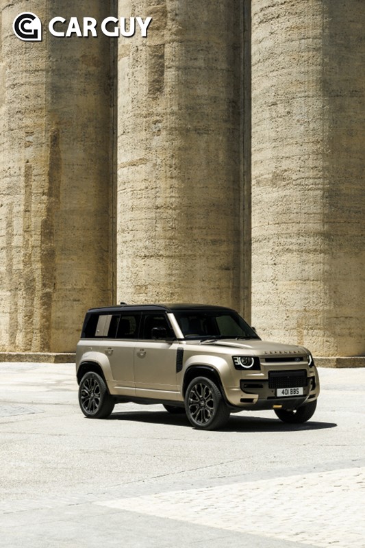 익스테리어 디자인에서는 디펜더의 전통적인 실루엣을 계승하면서도, 강인함과 세련된 감각을 동시에 구현했다. 전용 나르빅 블랙(Narvik Black) 루프와 콘트라스트 테일게이트, 새틴 문라이트(Satin Moonlight) 마감의 전후방 범퍼, 그래파이트 피니시 알루미늄 프런트 언더실드 및 후방 보호 설계가 적용돼 견고한 인상과 내구성을 더했다. 전후방 리커버리 포인트는 포스퍼 브론즈(Phosphor Bronze) 컬러로 마감돼 세심한 디테일까지 놓치지 않았다.