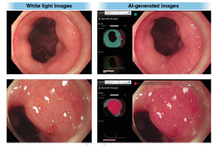 한편 병리 이미지 분석 분야에서도 AI의 활용 가능성은 점점 넓어지고 있다. AI는 Whole-Slide Image(WSI) 기반의 병리 조직 슬라이드를 분석해 암 전 단계(이형성)와 암 조직을 자동 분류할 수 있으며, 최근 연구에서는 바렛식도 조직을 대상으로 83~95% 이상의 정확도를 기록한 사례도 있다.