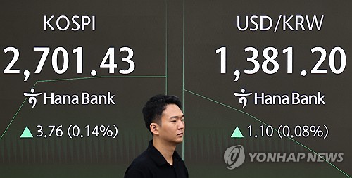 이날 오전 11시 5분 현재 코스피 지수는 전 거래일 대비 5.81포인트(0.22%) 오른 2,703.48을 나타냈다.