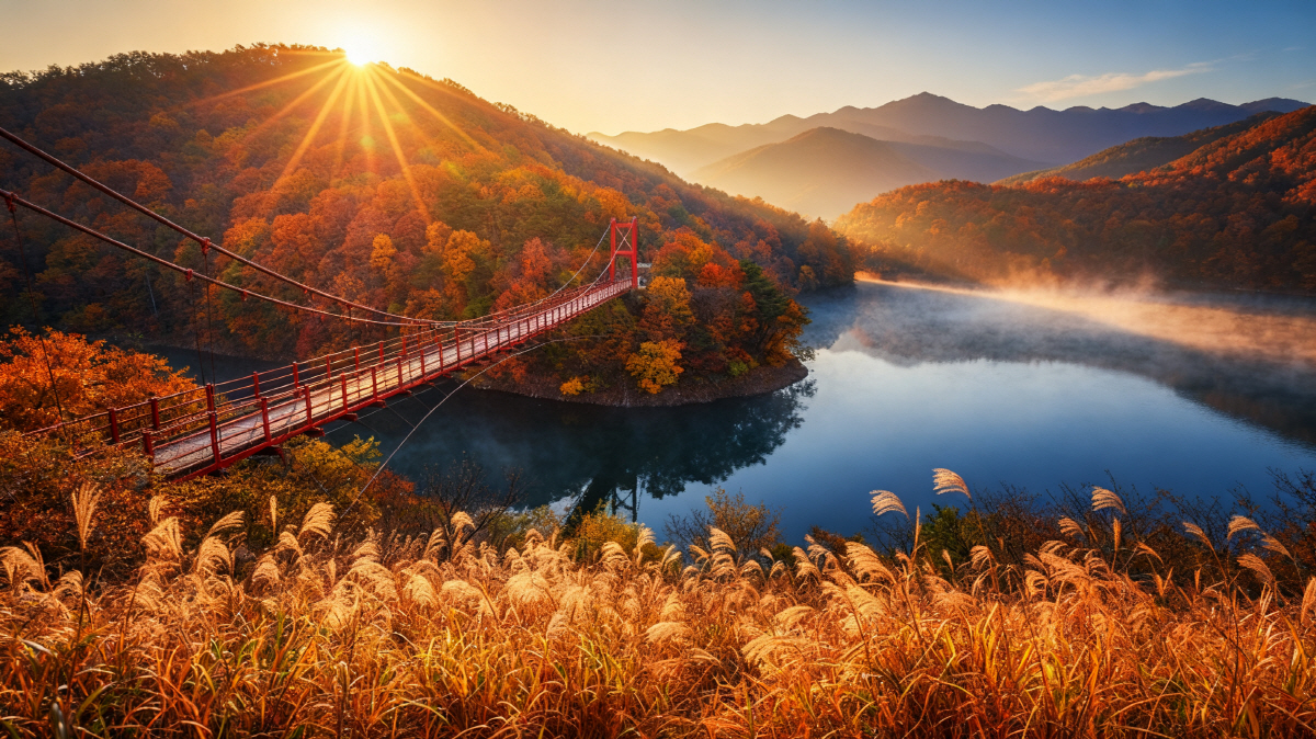 가평의 청평호수길은 드라이브 코스로도 유명하지만, 가을이면 단풍이 호수에 비쳐 몽환적인 풍경을 만든다. 호명호수 전망대에서는 붉게 물든 산과 호수가 파노라마처럼 펼쳐진다. 특히 아침 물안개가 낄 때 삼각대로 담는 사진은 감성이 가득하다. 청평역에서 택시로 10분 거리라 접근성도 좋다.