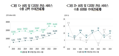 같은 기간 상품 수출은 등락을 반복했지만, 디지털 전송 서비스는 글로벌 금융위기나 코로나19 등 외부 충격에도 꾸준히 확대돼 안정적인 성장 흐름을 유지했다.
