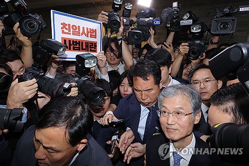 이어 "판결문에 드러나는 내용만이 공적인 효력이 있고, 대법원장이라고 하더라도 전합 구성원의 1인에 불과한 이상 판결 이외의 방법으로 의견을 드러낼 수는 없다"면서 "판결문에 기재된 상세한 내용과 미리 제출한 서면 질의에 대한 사법행정적 검토 답변, 그리고 대법원의 일반적 심리구조에 관한 법원행정처장의 답변 등에 의해 재판과 관련한 국민들과 위원님들의 의혹이 일부나마 해소됐기를 바란다"고 덧붙였다.