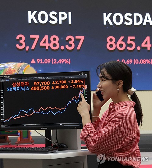 이날 코스피는 전장보다 91.09포인트(2.49%) 오른 3,748.37로 거래를 종료했다.
