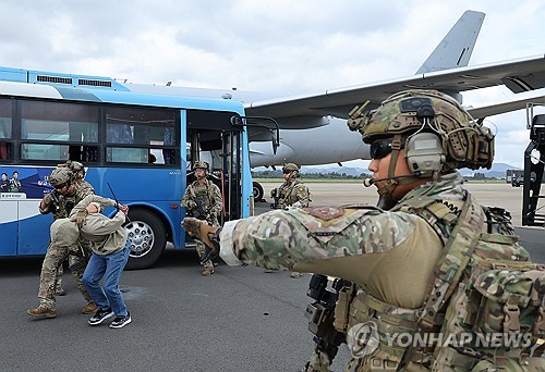 주기장에 도착해 경주로 이동을 준비 중이던 APEC 참가국 대표단 항공기와 버스에서 총격음이 발생한 상황을 가정해 훈련이 시작됐다.