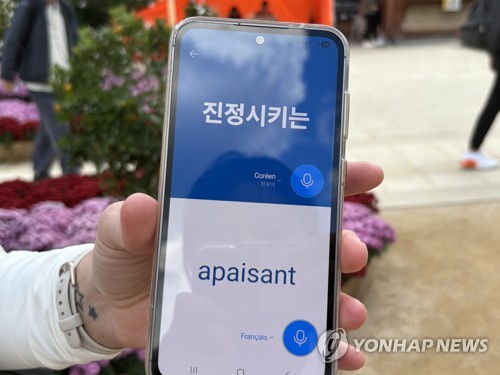 프랑스인 베로니크(46) 씨는 "아름답고 공기도 맑다"며 미소 지었다. 사찰에 오니 어떠냐고 묻자 그는 번역기 화면에 'apaisant(진정시키는)'라는 단어를 띄워 보여줬다.