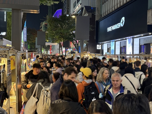 (서울=연합뉴스) 박수현 기자 = 핼러윈 데이를 하루 앞둔 지난 30일 오후 9시께. 서울 대표적인 관광 명소인 명동 거리는 외국인 관광객으로 발 디딜 틈 없이 북적였다.