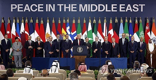 (요하네스버그=연합뉴스) 유현민 특파원 = 지난 13일(현지시간) 이집트의 홍해 휴양지 샤름엘셰이크에서 열린 가자 평화 정상회의는 중동의 분쟁사에 한 획을 그은 자리였다. 2년 넘게 이어진 가자지구 전쟁의 총성이 멎고 인질 석방이 시작됐다. 그러나 중동 평화의 역사적 현장은 이내 도널드 트럼프 미국 대통령의 독무대로 바뀌었다.