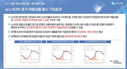 (서울=연합뉴스) 신호경 기자 = 은행 등 금융사가 대출상품의 지표금리로 코파(KOFR;Korea Overnight Financing Repo Rate)를 사용하면, 금융소비자 이자 부담이 줄어들 수 있다는 주장이 나왔다.