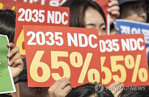 기후싱크탱크 기후솔루션은 이날 입장문을 통해 "정부가 제시한 2035 NDC는 '50∼60% 범위 목표'라고 표현했지만, 실제는 하한에 가까운 50% 또는 53% 감축을 염두에 둔 매우 부족한 목표"라고 밝혔다.