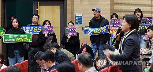 이날 공청회 토론에서도 정부의 2035 NDC 안에 반발하는 시민단체 측의 목소리가 빗발쳤다.