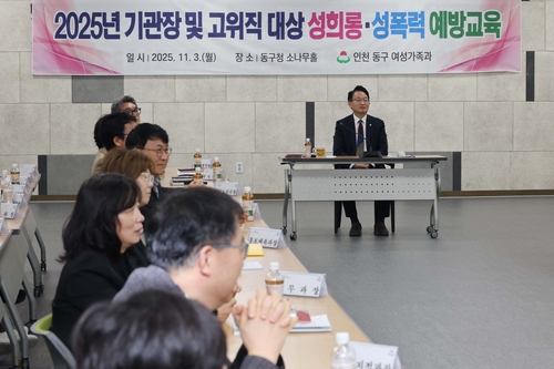 인천 동구(구청장 김찬진)는 지난 3일 구청 소나무홀에서 5급 이상 간부 공무원을 대상으로 성희롱·성폭력 예방 교육을 실시했다고 밝혔다.