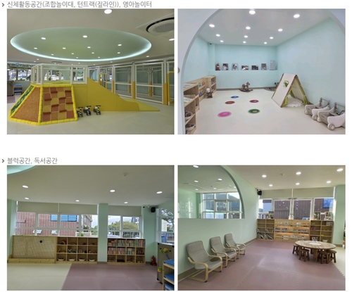 조합 놀이대와 집라인이 있는 신체활동 공간, 영아 전용 놀이터, 블록 놀이 공간, 독서 공간 등 놀이 영역과 교육실·수유실·소독실 등 편의시설, 안전하고 친환경적인 원목 놀잇감 등을 갖췄다.