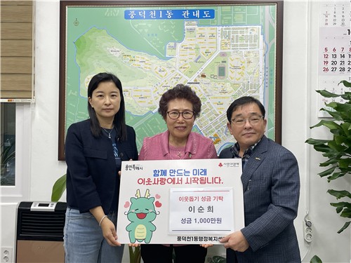 시는 풍덕천1동 부녀회원으로도 활동하며 지역의 어려운 이웃을 살피는 이같은 이씨의 꾸준한 나눔이 지역사회에 따뜻한 울림을 주고 있다고 밝혔다.
