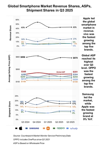 카운터포인트리서치는 "향후 전 세계 스마트폰 시장은 프리미엄화 추세와 폴더블 스마트폰 채택 확대에 힘입어 ASP와 매출이 점진적으로 성장할 것"이라고 전망했다.