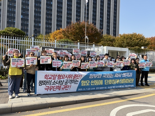 기자회견에 나선 전국교직원노동조합 서울지부 홍순희 지부장은 "소녀상을 훼손하고 학생들에게 공포를 주는 불법적 행위를 즉각 차단하고 국회는 학교 앞 혐오시위 금지법을 당장 만들라"고 촉구했다.