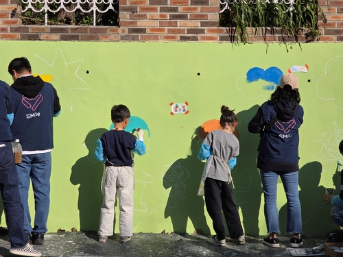 (서울=연합뉴스) 정준영 기자 = 성동구(구청장 정원오)는 SM엔터테인먼트와 협력해 지난 1일 대현산 장미원 입구에 있는 구립금봉어린이집에서 '벽화 조성' 봉사활동을 했다고 7일 밝혔다.