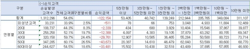 특히 50대는 60.1%(34만7천285명)가 손실 상황으로 나타났으며 40대도 59.7%(32만158명)가 손실을 보고 있다.
