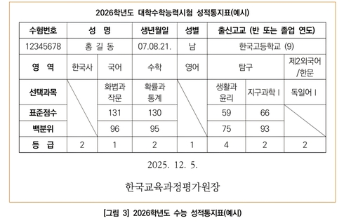 절대평가인 한국사와 영어, 제2외국어·한문의 경우 원점수 기준으로 부여되고, 나머지 영역은 표준점수에 근거해 매겨진다.
