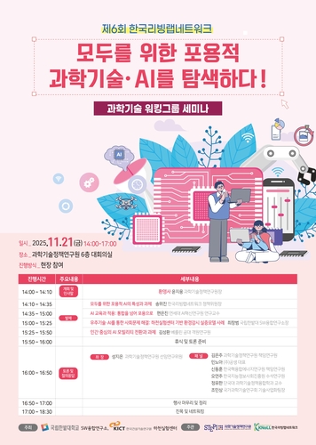 ▲ 과학기술정책연구원(STEPI)은 21일 세종 STEPI 대회의실에서 '모두를 위한 포용적 과학기술·AI 탐색'을 주제로 '제6회 한국리빙랩네트워크 과학기술 워킹그룹 세미나'를 연다고 14일 밝혔다. 송위진 정책위원장이 '모두를 위한 포용적 AI의 특성과 과제'를 주제로 발제하며 전문가 주제발표와 패널토론 등이 진행된다.