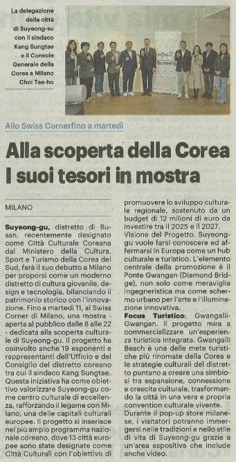 첫날 리셉션에서는 주밀라노 대한민국 총영사관, 밀라노 시청 및 시의회 관계자, 밀라노 지역 언론사 20개소, 대한무역투자진흥공사, 한국국제문화교류진흥원, GTO관광 관리 조직, 밀라노 관광연맹 조직회, 밀라노 항공ㆍ관광 대행사 등 이탈리아 언론사 및 관광 관련 단체가 대거 참여해 부산의 작은 도시이면서 부산을 대표하는 문화도시인 수영구에 큰 관심을 나타내었다.