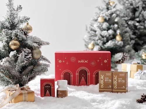 ▲ 쎌바이오텍의 유산균 브랜드 '듀오락(DUOLAC)'은 연말을 맞아 '홀리데이 스페셜 기프트'를 한정판으로 출시하고 사전예약 판매를 시작했다고 25일 밝혔다. 크리스마스 분위기를 담은 트리 케이스에 배우 손석구 픽(Pick) 제품인 '듀오락 골드 캡슐' 30일분 2개와 10일분을 더해 총 70일분으로 구성했으며, 21% 상당의 할인 혜택을 제공한다. 듀오락은 블랙프라이데이 시즌을 맞아 오는 28일 오전 10시, 선착순 100명에게 제공되는 50% 반값 쿠폰을 비롯해 최대 70% 할인, 신규 가입 1만원 쿠폰 등 다양한 혜택을 마련했다. (서울=연합뉴스)