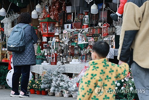 (서울=연합뉴스) 신현우 기자 = 30일 서울 중구 남대문시장을 찾은 시민이 크리스마스 소품을 살피고 있다. 2025.11.30 nowwego@yna.co.kr