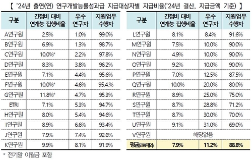 이들과 달리 ETRI의 경우 연개능 비율을 높이면서 간접비를 소진해 결산잉여금을 줄여 전체에 고르게 배분될 수 있는 결산잉여금 기반 능률성과급을 줄이면서 행정직에 더 유리한 인센티브 구조를 낳은 측면도 있다는 해석도 나온다.