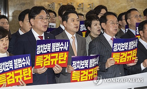 법원의 영장 기각으로 국민의힘을 겨냥한 특검의 '짜맞추기 수사'와 더불어민주당의 '내란 정당' 공세가 야당 탄압 차원임이 확인됐다고 주장하면서 국면 전환을 시도하는 모습이다.