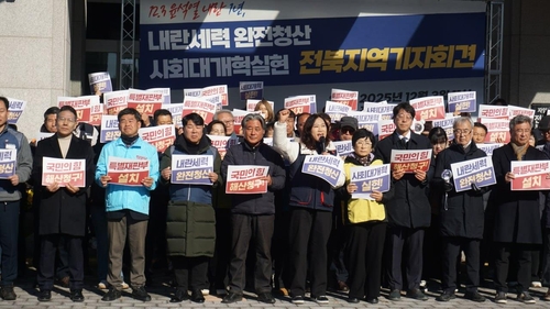 내란세력청산·사회대개혁실현 전북개헌운동본부는 이날 전북도청 앞에서 기자회견을 열고 "불법·위헌의 비상계엄 선포 1년이 지난 지금 내락의 핵심 세력은 그 누구도 제대로 처벌받지 않은 채 민주주의를 조롱하고 있다"며 "내란 주요 종사자들에 대한 구속영장 기각과 전담재판부 설치 거부는 사법 농단이다. 사법부 개혁이 필요하다"고 비판했다.