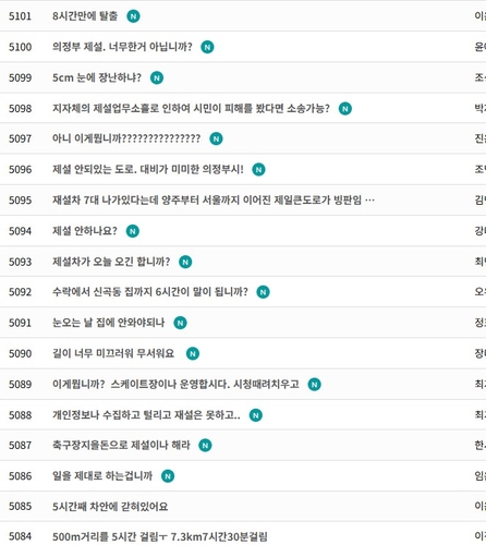 다음날인 5일에도 "제설 안됐다"며 출근길 불편을 호소하는 글도 이어졌다.