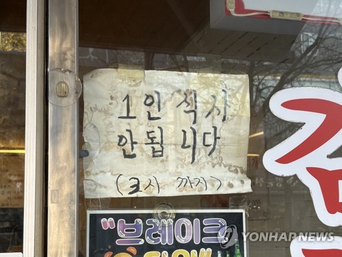 지난 1일 오전 11시 서울 서대문구의 한 김치찌개 식당에서 "1명이요"라고 말하자 직원은 "1인 식사는 안 된다"며 막았다. "곧 점심 손님이 몰릴 시간인데 한 사람이 한 테이블을 다 차지하면 곤란하다"는 설명이 뒤따랐다.