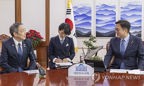 그러면서 "특히 의원 간 교류는 양국 관계가 좋을 때도, 그렇지 않을 때도 의원들의 지원이 있었다. 최근 일한 관계도 그런 연장선상"이라며 "의장님이 일본을 방문하고 참의원·중의원 의장님을 만나 뵙자고 한 것에 대해 기쁘게 생각하며, 도쿄에도 잘 보고하겠다"고 덧붙였다.