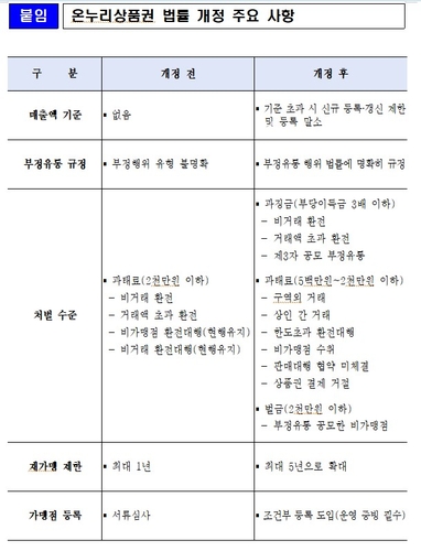 '상품권깡'에 대한 제재 기준이 기존 2천만원 이하 과태료 부과에서 이번 개정으로 부당이득금의 3배까지 회수할 수 있도록 강화됐다.