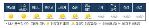 반도체·디스플레이는 '맑음', 배터리·바이오·자동차·조선·섬유패션 산업은 '대체로 맑음', 기계·석유화학·철강·건설은 '흐림'으로 전망됐다.