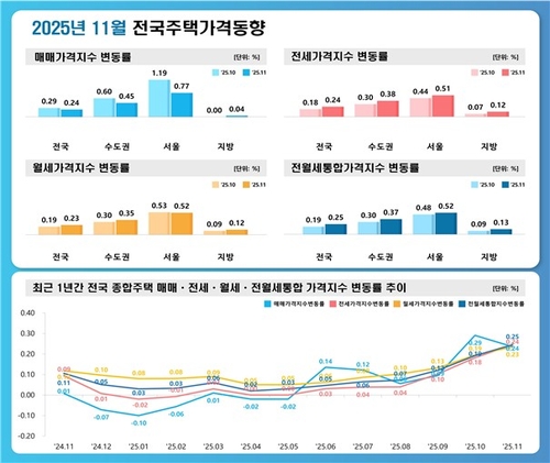 전국 주택종합 월세가격(0.19%→0.23%)도 전월 대비 상승폭을 확대했다.