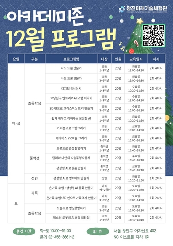 광진구민이라면 누구나 광진미래기술체험관 누리집에서 선착순으로 신청하면 된다. 참가비는 무료다.