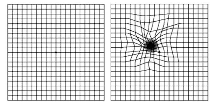 암슬러 격자 자가진단 시 선이 휘어져 보이거나, 중심부위 암점 등의 증상이 나타나면 황반변성을 의심해볼 수 있다. 사진제공=김안과병원