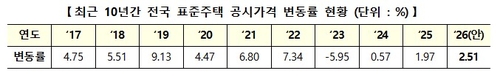 내년 표준 단독주택 공시가격은 올해 대비 전국 평균 2.51% 오른다.
