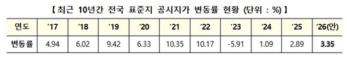 내년 표준지 공시지가는 전국 평균 3.35% 상승한다. 2023년부터 3년째(-5.91%→1.09%→2.89%→3.35%)) 오름폭을 키웠다.