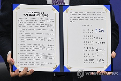 이날 회의에서는 광주 군·민간 공항을 무안으로 통합 이전하는 합의문이 도출됐다. 2025.12.17 [광주전남사진기자단] hs@yna.co.kr