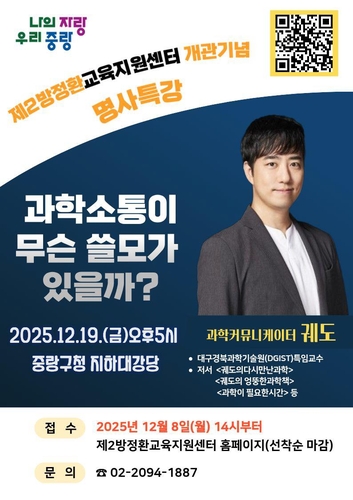 구는 개관을 기념해 오는 19일 오후 5시 구청 대강당에서 과학 커뮤니케이터인 '궤도'를 초청해 '과학소통이 무슨 쓸모가 있을까'를 주제로명사 특강을 연다.