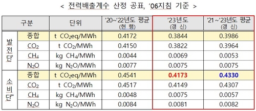 기후부는 "전력배출계수를 3년에 한 번 갱신하다 보니 재생에너지 등 무탄소 전원 비중이 높아진 것이 계수에 바로 반영되지 않으면서 전력 사용에 따른 온실가스 배출량이 실제보다 더 많이 산정되는 문제가 있었다"고 설명했다.