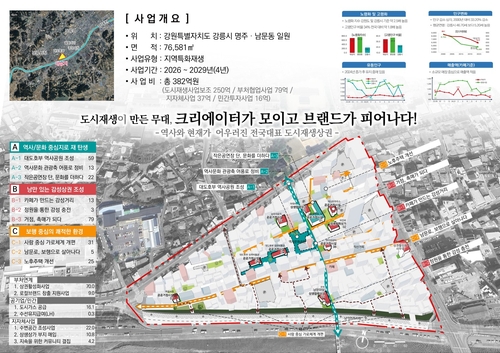 '명주·남문동 지역특화사업'은 총사업비 382억 원 규모로 ▲ 역사 문화 자산을 통한 지역 정체성 회복 ▲ 감성 상권 조성 ▲ 보행 중심 가로환경 구축 등을 추진하는 사업이다. 상권 활성화 사업과 긴밀히 연계해 '역사·문화·상권 융합형 도시재생'을 실현하는 데 중점을 둔다.